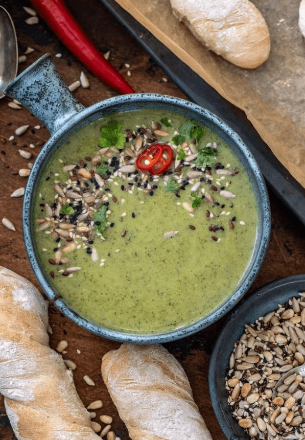 Jeśli jest coś, co uwielbiamy jeść na co dzień, to zupa z dobrym chlebem! Zupa brokułowa jest bardzo łatwa i szybka w przygotowaniu, a ja dodaję do niej trochę chili, które naprawdę podbija smaki i dodaje tej odrobiny ostrości 🙂 Robię tę zupę ze świeżych brokułów, ponieważ uważam, że smakuje o wiele lepiej niż ta z mrożonych. Do zupy dodałam także kilka różnych nasion, które uprażyłam na patelni. Możesz użyć dowolnych, które masz w domu, na przykład sezamu, pestek dyni, siemienia lnianego lub słonecznika.