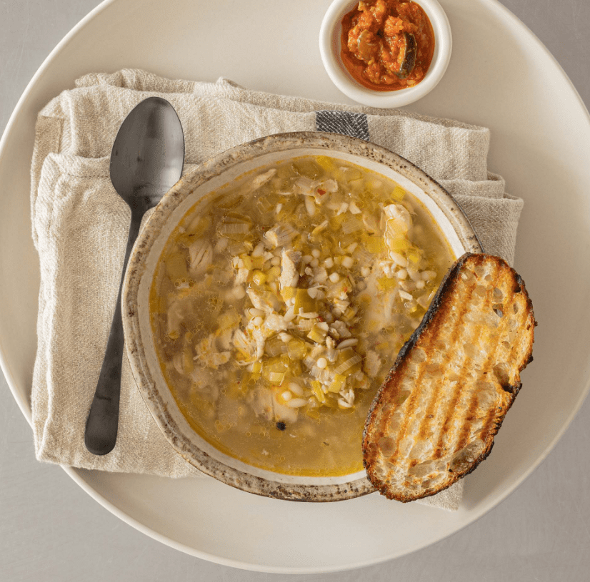 Rosół z kurczaka to jedna z tych potraw, które niemal instynktownie kojarzą się z domem, spokojem i regeneracją. Jest ciepły, łagodny, a jednocześnie pełen głębokiego smaku. Ta wersja zupy z kurczaka, pora i selera powstaje od podstaw – zaczyna się od gotowania całego kurczaka, dzięki czemu bulion zyskuje intensywny aromat i naturalną pełnię smaku.
