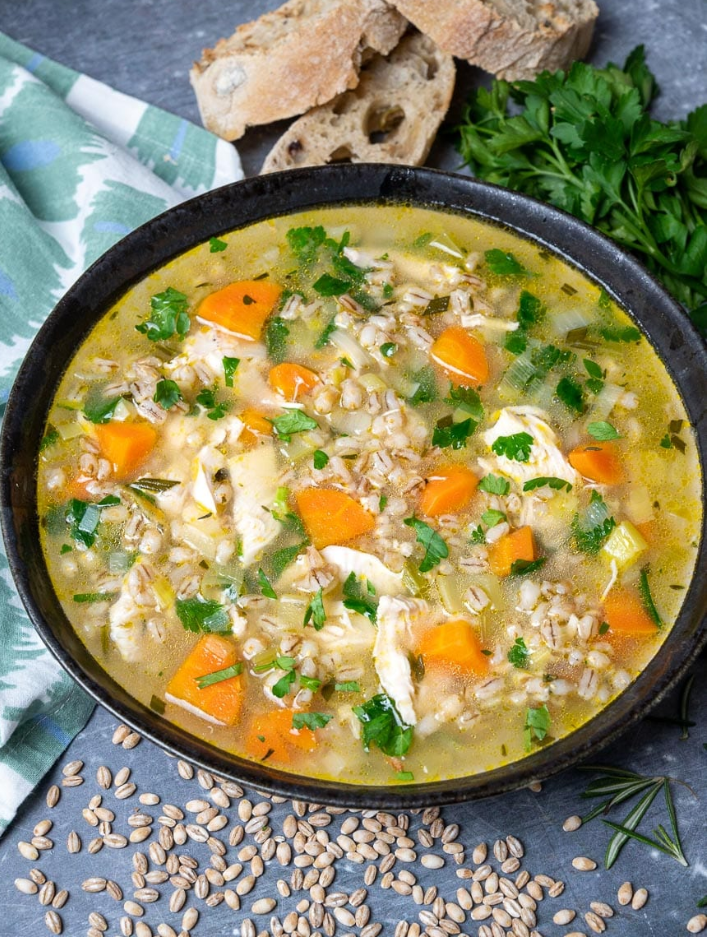 Zupa z kurczakiem i kaszą jęczmienną to danie idealne na chłodne dni – pełne smaku, pożywne i rozgrzewające. Dzięki zdrowym składnikom, takim jak warzywa, mięso z kurczaka, kasza jęczmienna i aromatyczne zioła, ta zupa stanie się prawdziwym ulubieńcem na zimowe wieczory. Dodatkowo, kasza jęczmienna nadaje jej wyjątkowej struktury, tworząc bardziej treściwą potrawę niż klasyczna zupa.